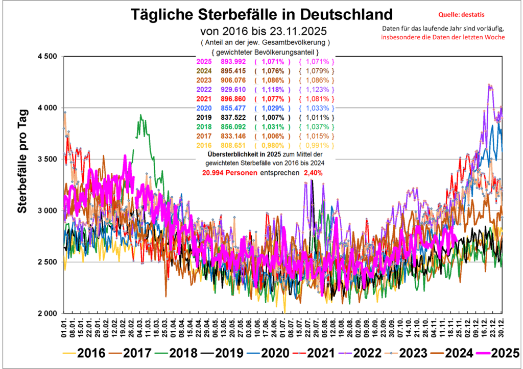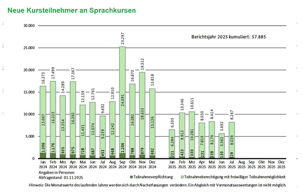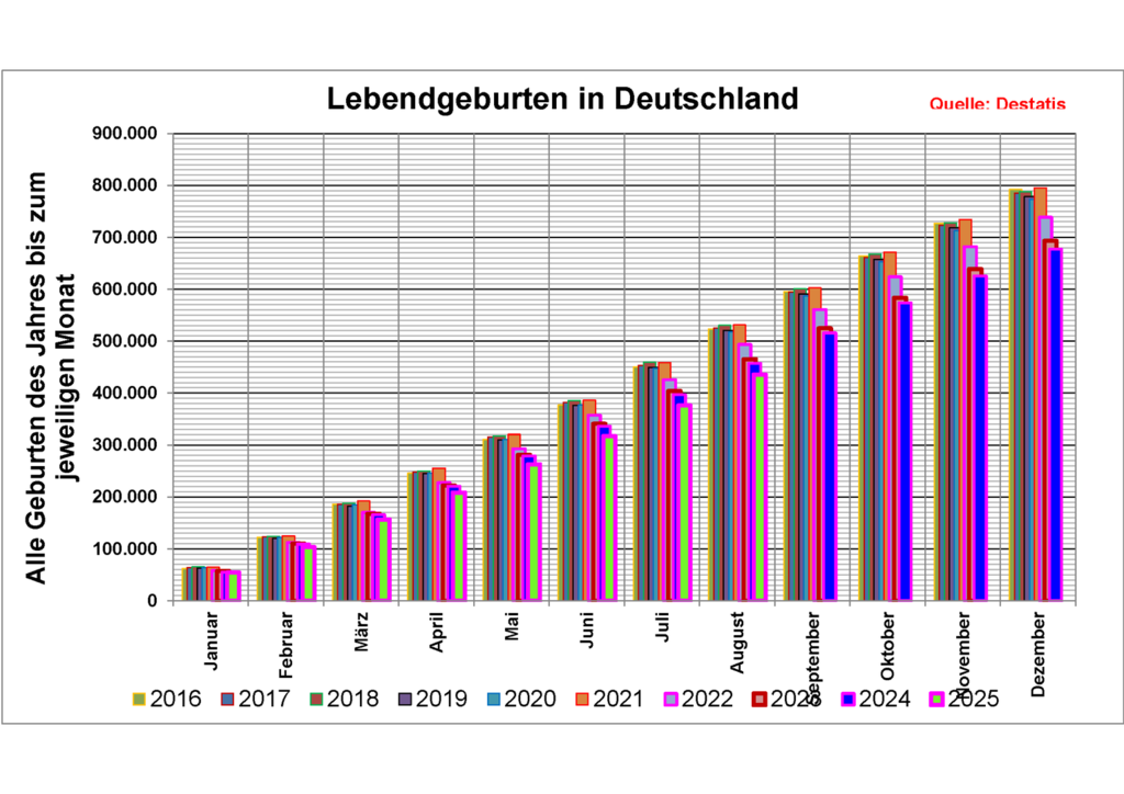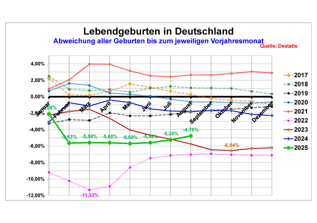 bisher 4,8 % (21.766) weniger Lebendgeburten als 2024