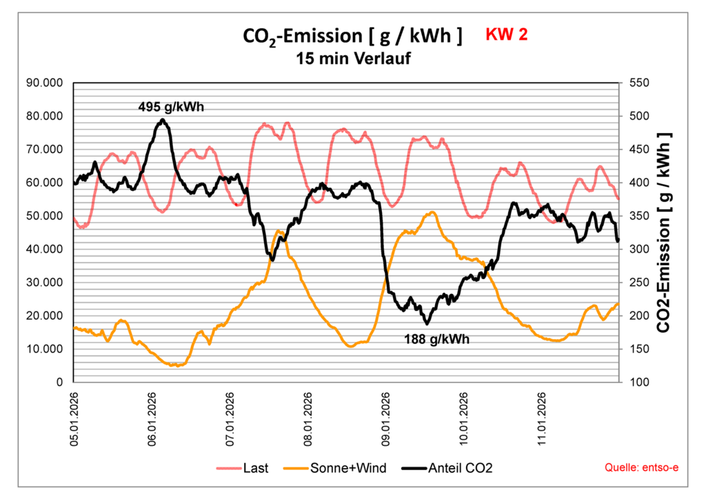 max. 495 g/kWh, min. 188 g/kWh im Mittel 347 g/kWh