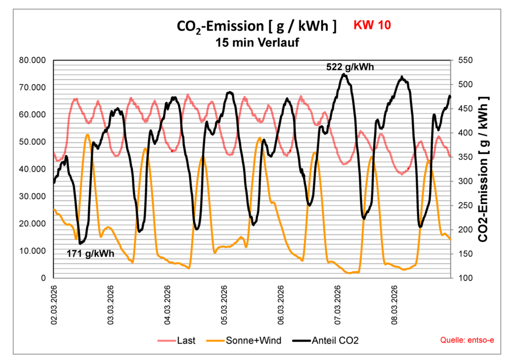 max. 464 g/kWh, min. 128 g/kWh im Mittel 269 g/kWh