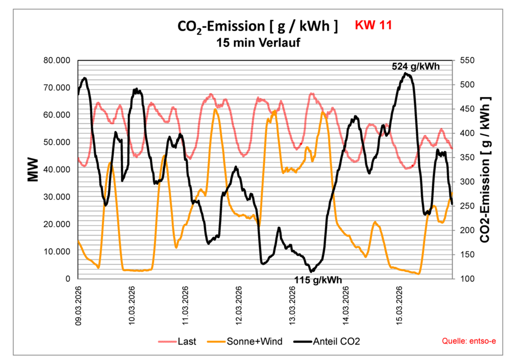 max. 524 g/kWh, min. 115 g/kWh im Mittel 313 g/kWh